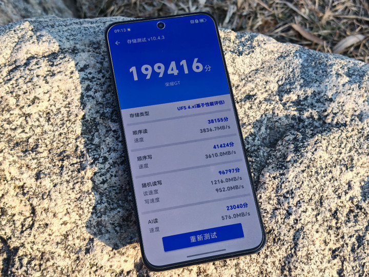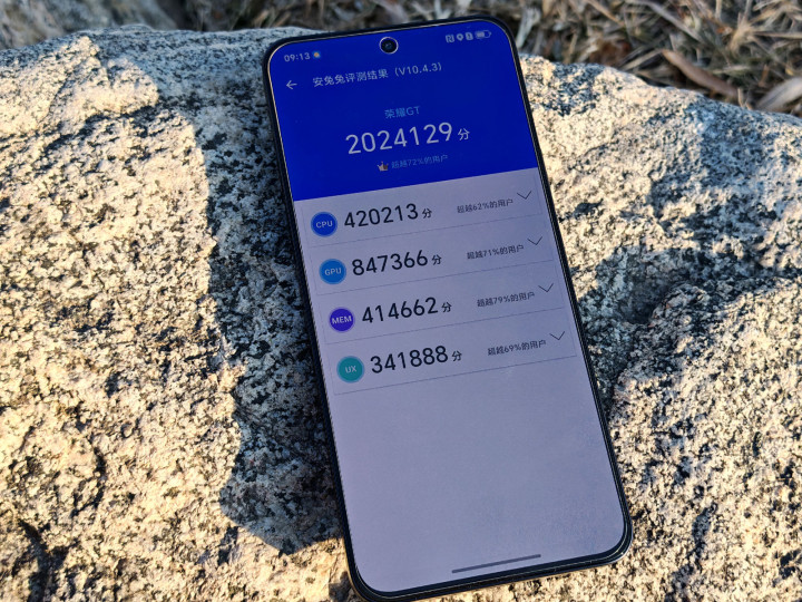 性能是荣耀GT这次主打的卖点,我觉得只有懂手机配置,在乎性价比的用户才会选这部手机,实际上,它的性能释放到底怎么样?其实看配置,荣耀GT一定不输现在市面上价位高它两倍的主流旗舰手机,处理器方面,采用的是一颗满血版的荣耀8Gen3处理器,这是高通目前仍然是第一梯队的旗舰处理器,其采用了台积电 4nm 制程工艺,升级了全新的1+5+2 的架构,性能非常强,仅次于高通前不久刚发布的骁龙8至尊版。同时,荣耀GT,在存储方面,配备了目前性能最强最新的LPDDR5X内存和UFS 4.0闪存组合,最高配置了16G+1TB,安兔兔跑分,可以最高跑200万+,仍然身处第一档旗舰机。