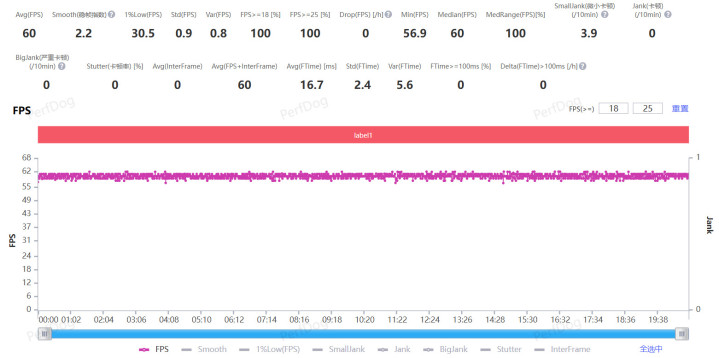 实测,最考验手机性能,游戏画面非常细腻的《原神》这款游戏,在室温25度环境下,游戏画质拉满,调到最高,跑了半个小时以后,可以看到,平均帧率可以稳稳的控制在60帧,帧率图像一条直线一样稳定。而且这次荣耀GT首发用上了幻影引擎,主打“渲显分离”,带来手机游戏稳稳的在高帧率体验,在游戏中心里可以选择帧率增强,画质增强,防误触,等功能。